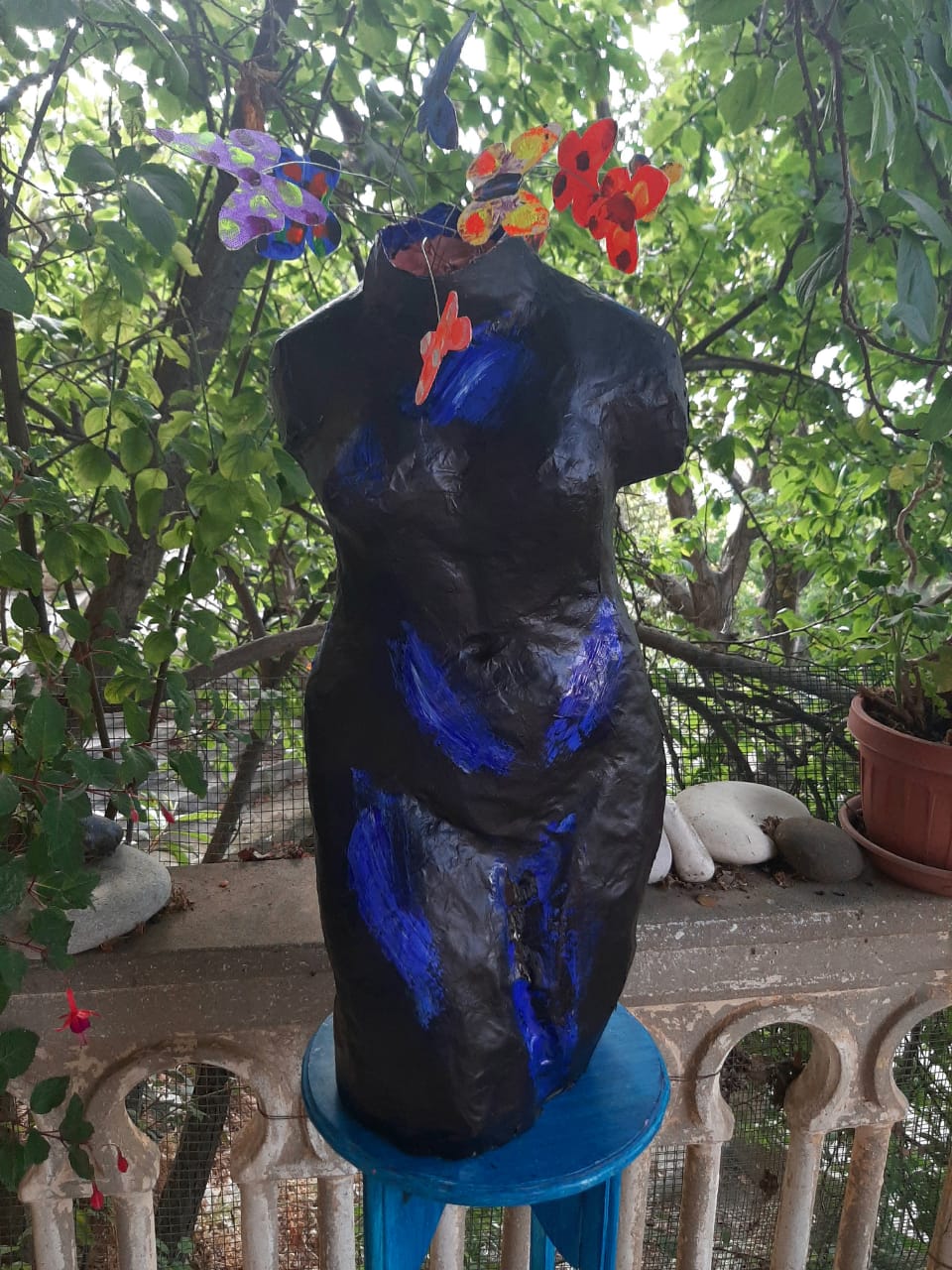 Papier mache, canvas, iron wires, acrylic paint