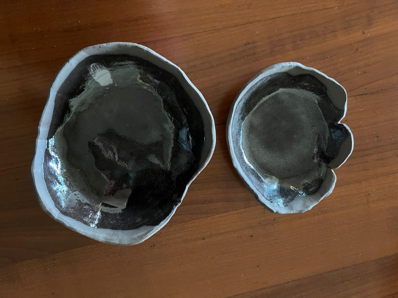 HANDCRAFTED BLACK CERAMICS H9XDIAM 25CM H7.5XDIAM 21CM