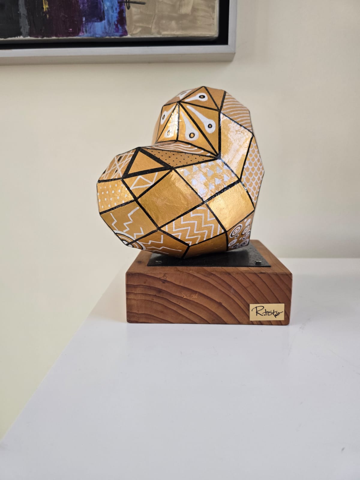 Combination of LowPoly& zentangleArt-Paper mache on a wood branch/steel base