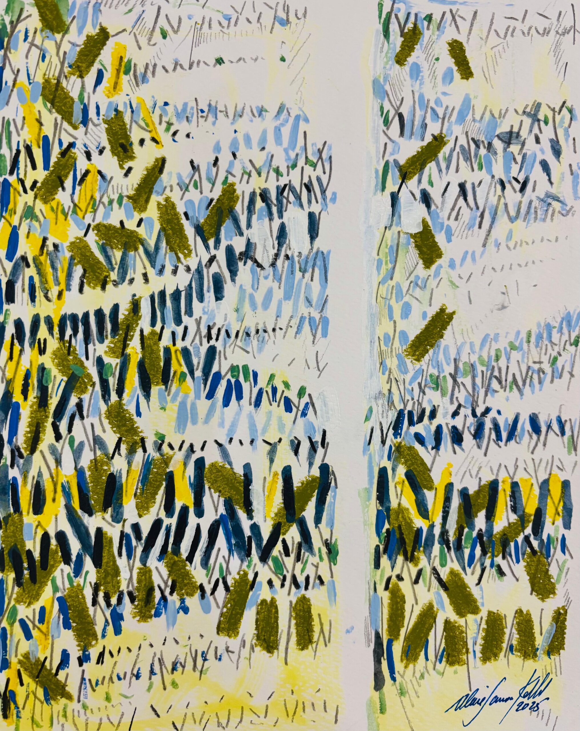 Diptych, mixed media on paper 23×18 cm (43×39 cm framed)