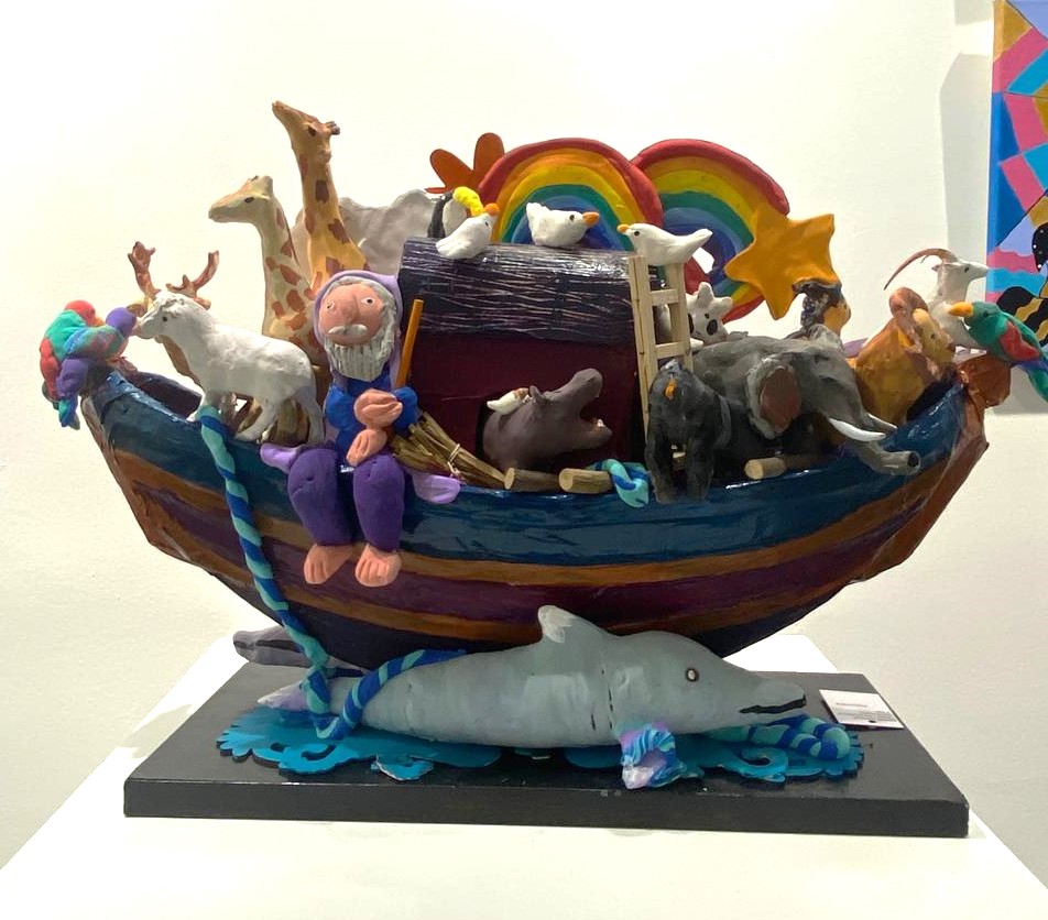 LARGE FIGURINES WITH VASE AND BIRD, NEVINE MATTAR