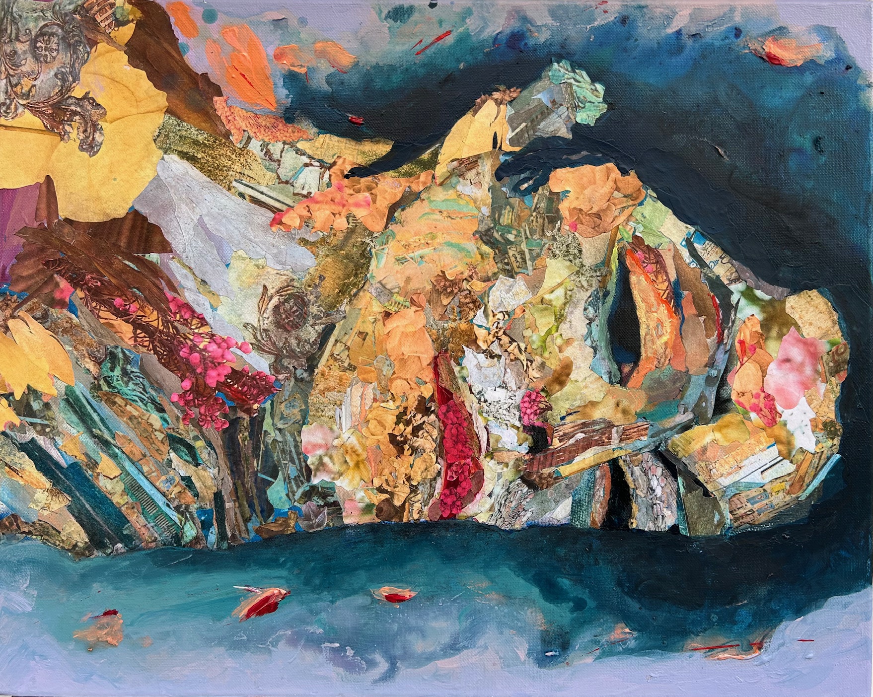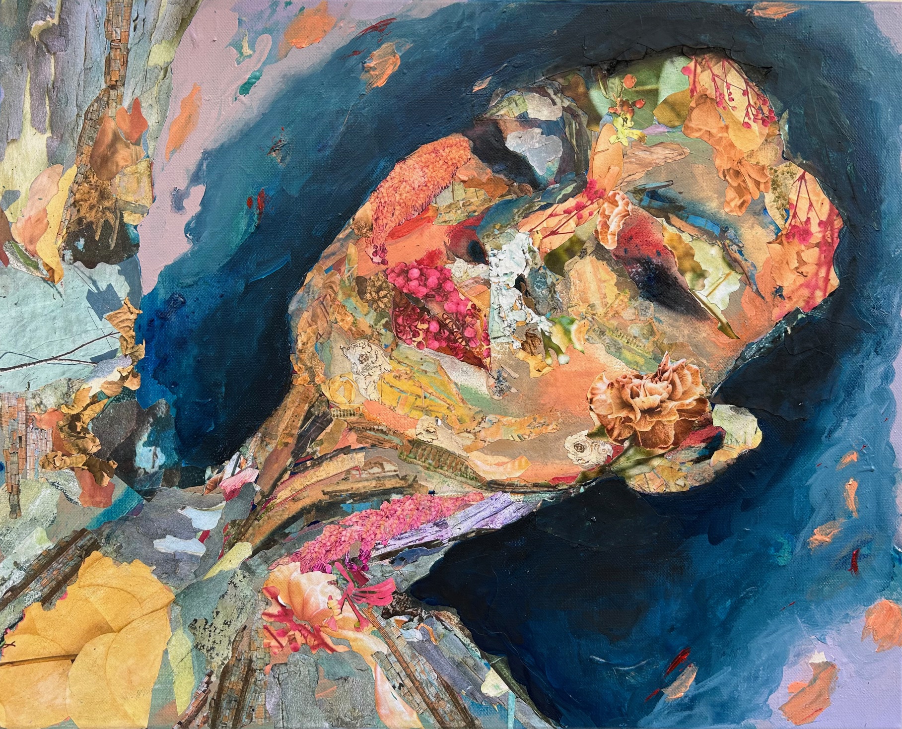 Mixed Media on Canvas: paper collage, acrylic paint, charcoal