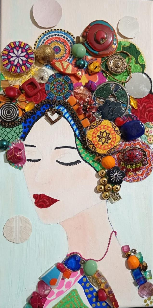 Mixed media( Acrylic, Accessories and metal elements) on canvas 20×40 cm